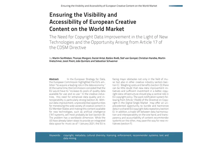 Ensuring the Visibility and Accessibility of European Creative Content on the World Market: The Need for Copyright Data Improvement in the Light of New Technologies