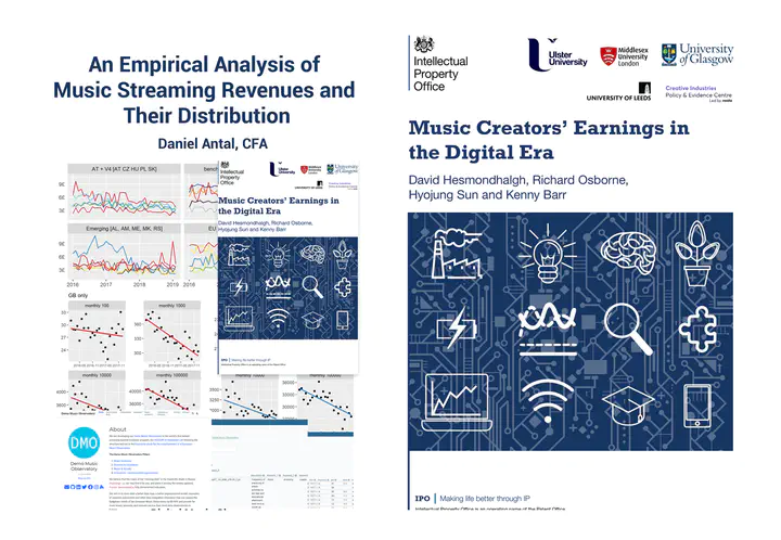 Empirical study of music streaming revenues and their distributionThis report analysed how UK music creators earn from streaming and why their revenues are often flat or declining despite overall market growth. It showed that without international data harmonisation and advanced survey methods, it is impossible to measure the earnings of a typical rights-holder. The study highlighted exchange rate effects, falling per-stream values, and the limits of current remuneration schemes. It contributed to UK and EU policy debates on equitable remuneration and transparent distribution in the streaming era.