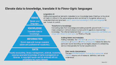 The Finno-Ugric Data Sharing Space builds on a previous initiative that unified all known music ever recorded or produced in Slovakia (Ministerstvo kultúry SR and Open Music Europe 2023), in collaboration with a Wikipedian-in-residence. Although Slovak music represents a relatively compact cultural domain, the relevant data was dispersed across numerous public and private institutions—each with its own metadata conventions, languages, and access protocols. This earlier effort showed that even within a narrowly defined area, knowledge integration is complex and labour-intensive—but can deliver substantial impact when institutional silos are bridged and practices aligned.