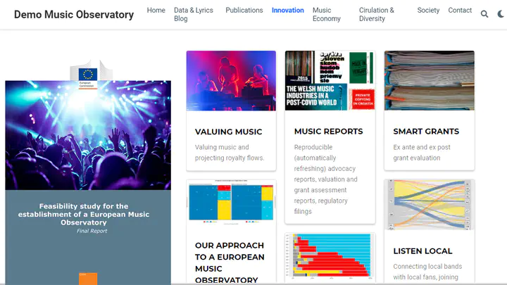 Challenge Our Demo Observatory: Check out the Music Diversity & Circulation Pillar of our Demo Music Observatory. If you do not find what you are looking for, contact us — we will try to put the data there from our repositories.