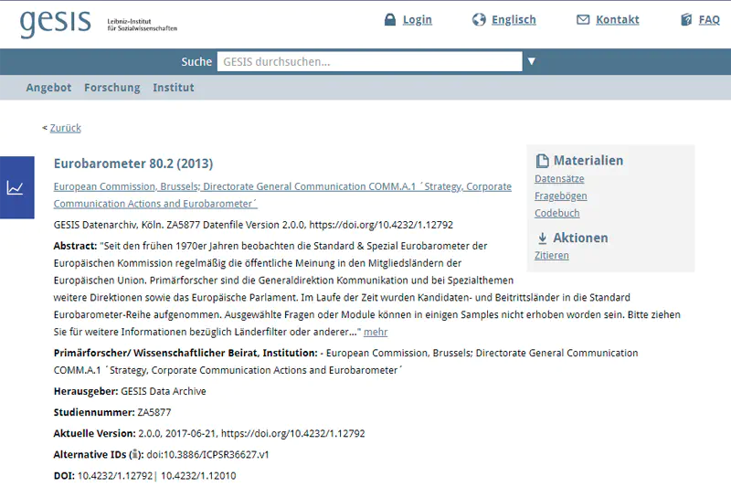 European Commission, Brussels. 2017. “Eurobarometer 80.2 (2013).” GESIS Data Archive, Cologne. ZA5877 Data file Version 2.0.0, https://doi.org/10.4232/1.12792. https://doi.org/10.4232/1.12792.